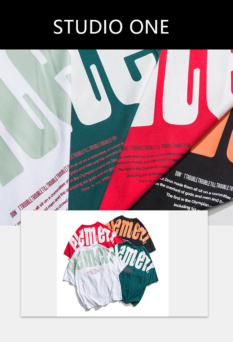 592531246034_白色 日系潮男时尚t恤夏季新款背后字母印花半袖衫宽松ulzza