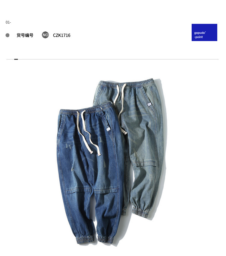 • 货号:GPD-CZK1716,风格:日式,款式:铅笔裤/小脚裤,裤型:锥型,特殊工艺:水洗,磨白,做旧,磨破,裤长:长裤,腰型:中腰,裤门襟:拉链开襟,厚薄:普通,适合季节:春秋季,适合人群:青年,上市年份/季节:2018年秋季,面料名称:牛仔,主面料成分:棉,主面料成分的含量:95,适用场景:日常,弹力:无弹,裤脚口款式:小脚